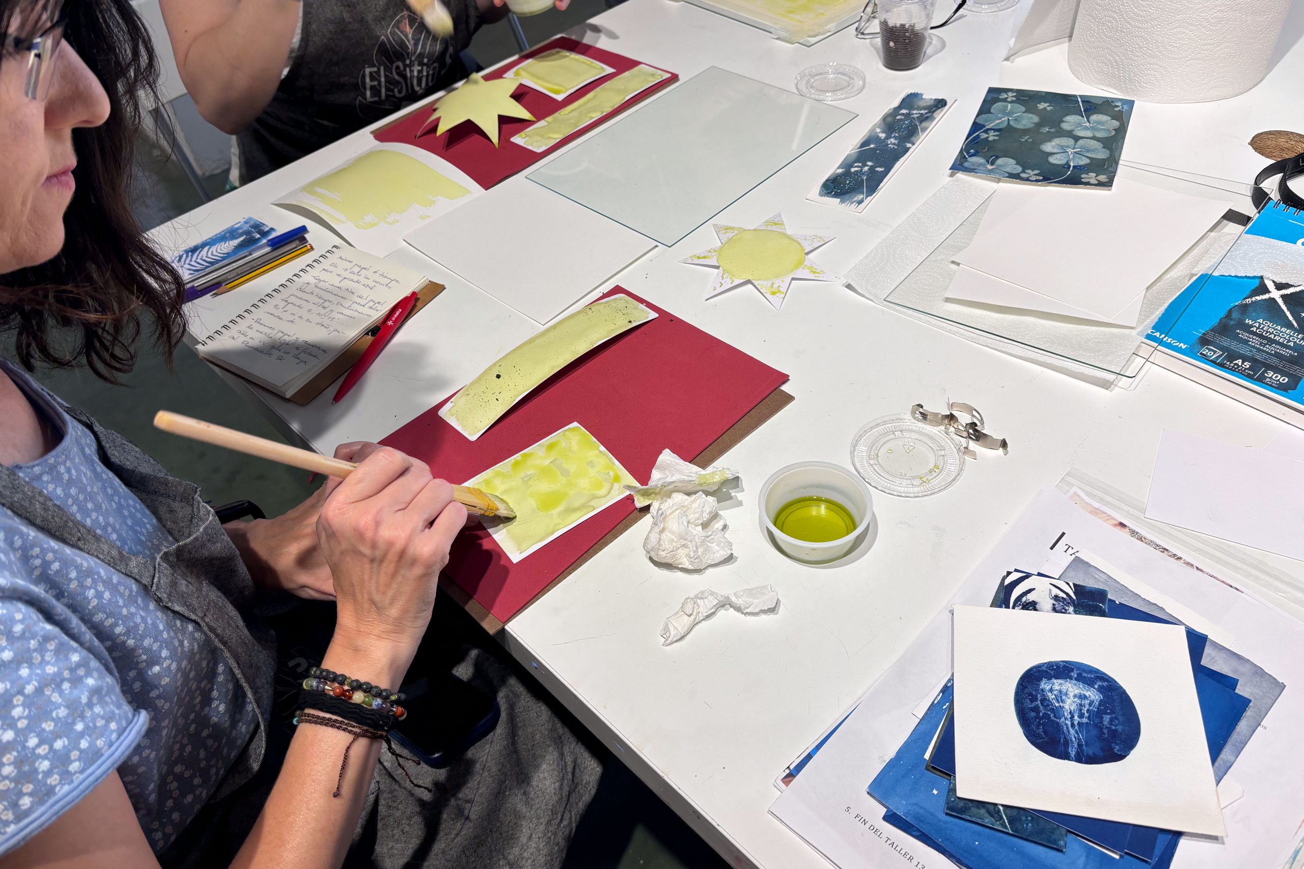 El pasado sábado15 de junio (2024), realizamos otro taller de Cianotipias, en este caso cianotipias botánicas, en el Sitio S de Madrid.