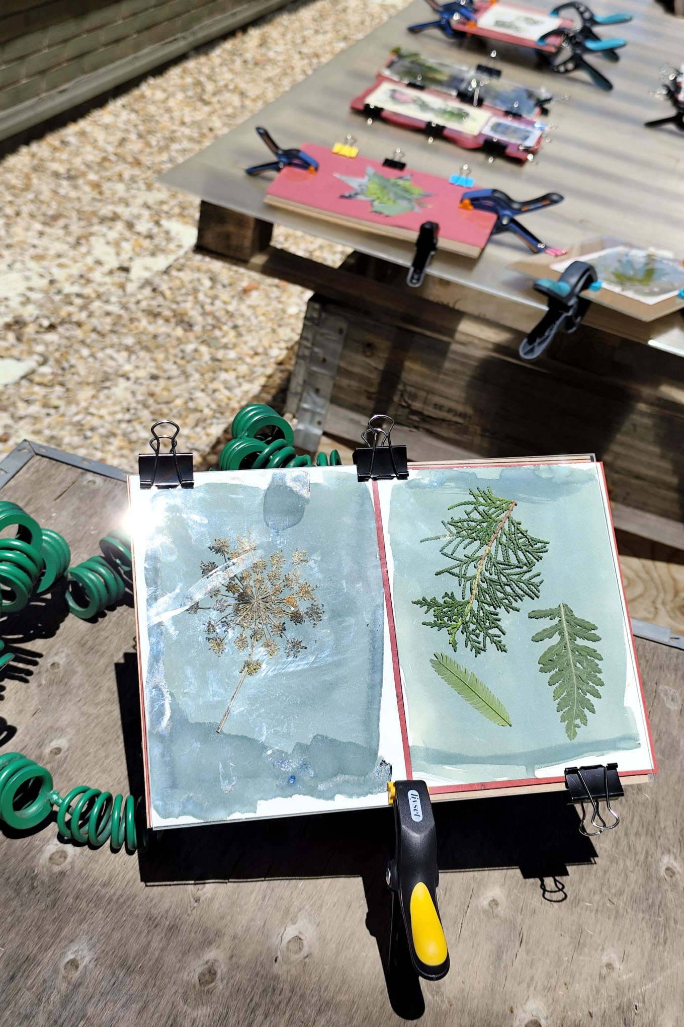 - Intervención artística de la mano de Silvia de @Studiomimarte: El foco del taller será la intervención de las cianotipias con medios como acuarelas, acrílicos, estampación botánica, lápices y técnicas mixtas. Descubrirás cómo añadir capas de color, crear contrastes, resaltar detalles para transformar y enriquecer tus obras.